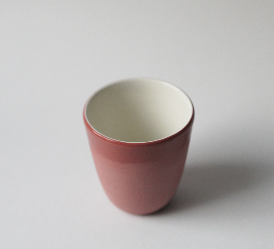 Made of white and red porcelain this cup is touch friendly. Carefully hand crafted, Sand Series cups are coated inside with glossy transparent glaze while the outside is left matte having a sandy finish..